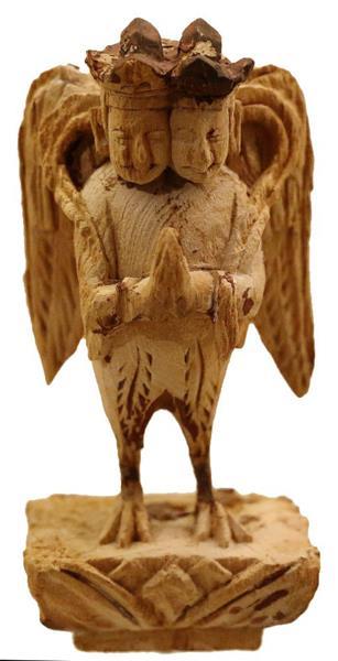 有趣的是,中国的《山海经》里可以找到与之类似的比翼鸟。但不同的是,比翼鸟只生得一只眼睛、一扇翅膀,必要两只并肩,才能飞行。